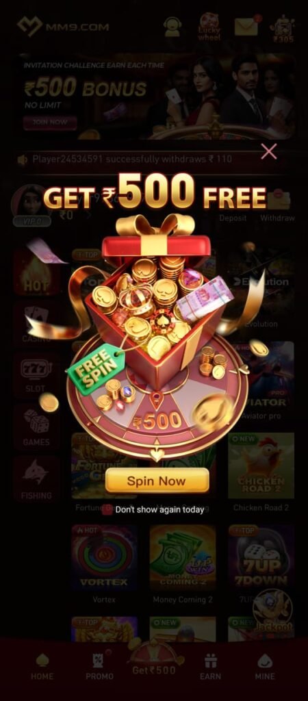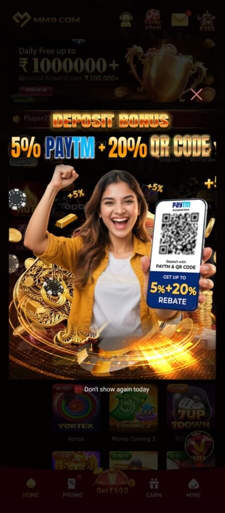 MM9 Game App is an online mobile gaming platform where users can play different games and win rewards. It offers various casino-style and skill-based games where players can earn bonuses and cash rewards while playing. The main concept of the app is Play Games and Earn Rewards.